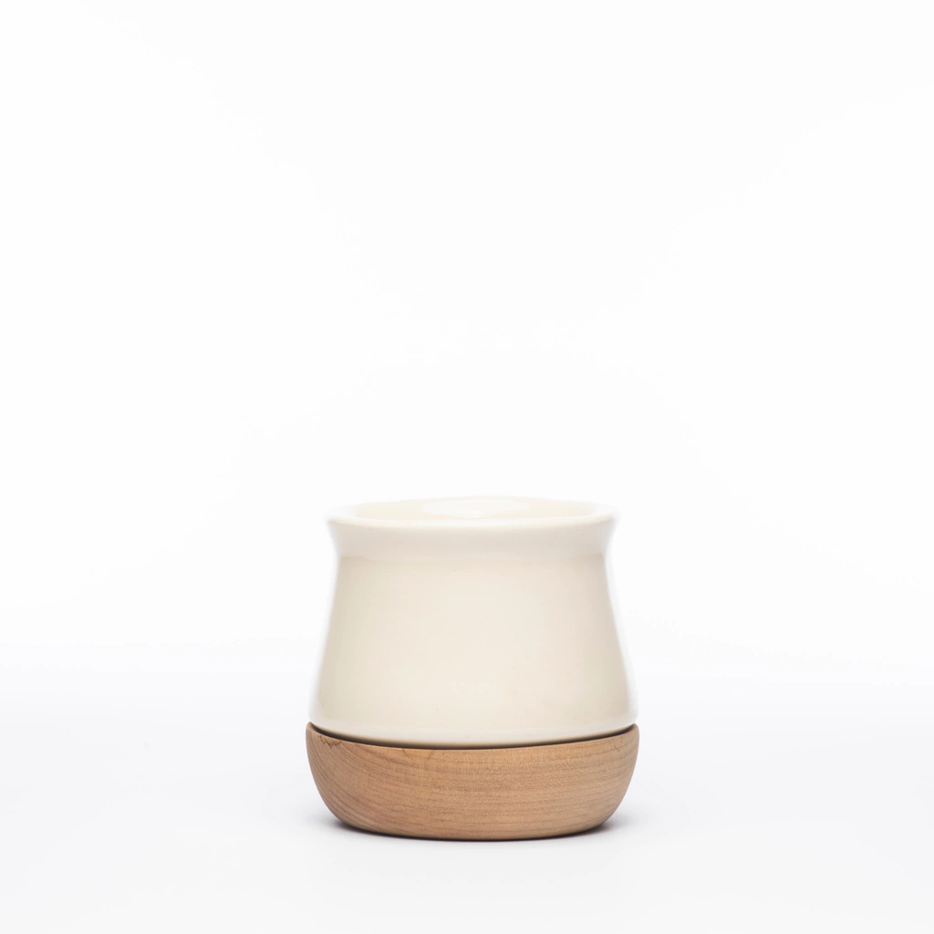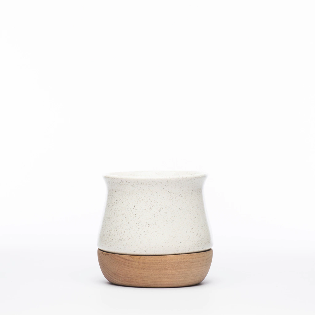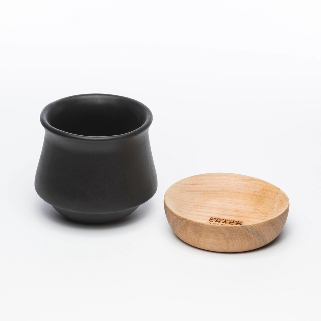 La Taza de cerámica Checha (pequeña)tiene el tamaño ideal para tomar un café americano acompañada de su platito de madera que permite transportarla de manera segura y cómoda.